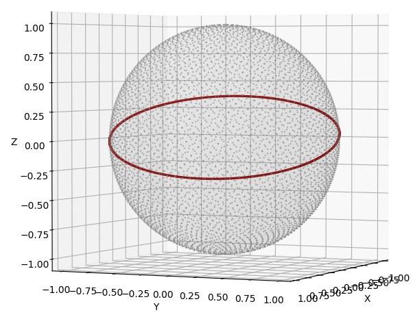 The following plot shows the points on the unit sphere which will give us the border points of the orthogonal projection onto the (y,z)-plane, i.e. ep = ex.
